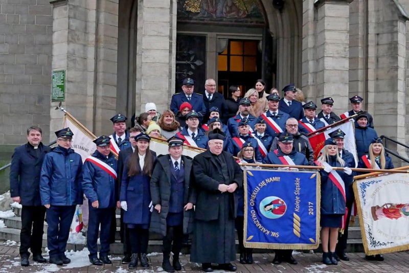 Po zakończeniu uroczystości kolejarze wraz z pocztami sztandarowymi wykonali pamiątkowe zdjęcie przed najstarszym kościołem w Katowicach.